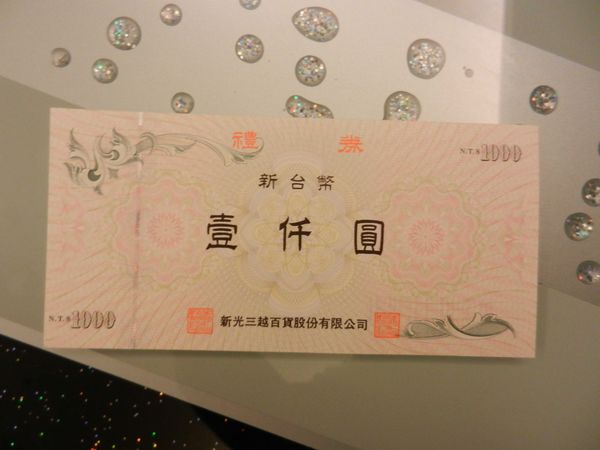 千元禮卷正面 (應可找零,因為沒有註明不找零)