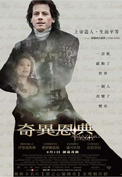 【奇異恩典】描寫兩百多年前的英國議員威廉威伯福斯(伊恩葛魯佛飾)的從政生涯中,致力於提倡廢除黑奴法案的奮鬥歷程。威伯福斯畢業於劍橋大學,21歲就被選為下議院議員,,在國會中以勇於挑戰權威、激進善辯而聞名。他提倡廢奴的政見,不但對於當時需要農場人力以壯大國力的大英帝國是一大挑戰,更不為議會及上層階級所見容.。