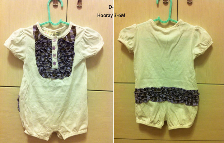 D- Hooray 3-6M連身衣,胸前和屁股有紫色花邊,僅穿過1次