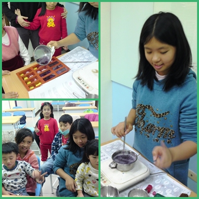 今天的上課內容有1.正確洗手及實做 2.皂中皂製作 3. 摺紙盒子