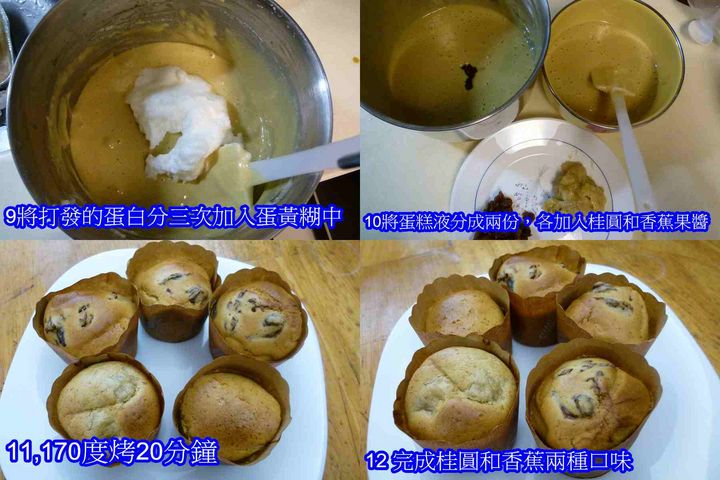 6 各別加入桂圓和香蕉果醬攪拌均勻