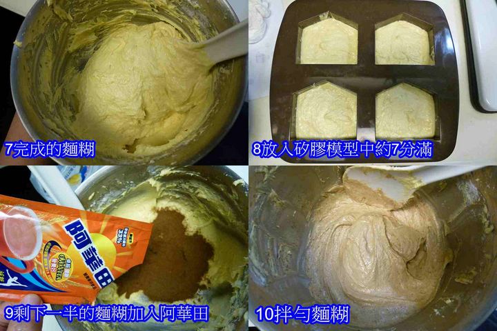 1 可將基礎的麵糊先做好,再加入不同的東西做口味的變化,例如阿華田,可可粉、各類果醬