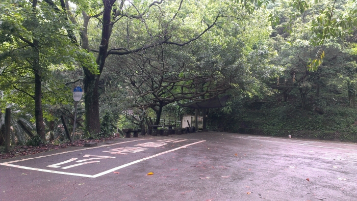 善息寺停車場平常沒什麼車,桐花節放晴的假日期間是客滿的。