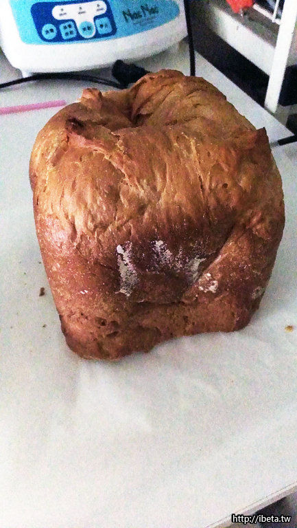 第一次做土司, 對麵包機的作業過程還很陌生, 紅豆太早放入, 完全看不出來有加紅豆{:4_186:}