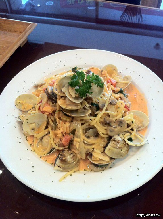 "粉紅醬迷迭酒香蛤蠣義大利麵"