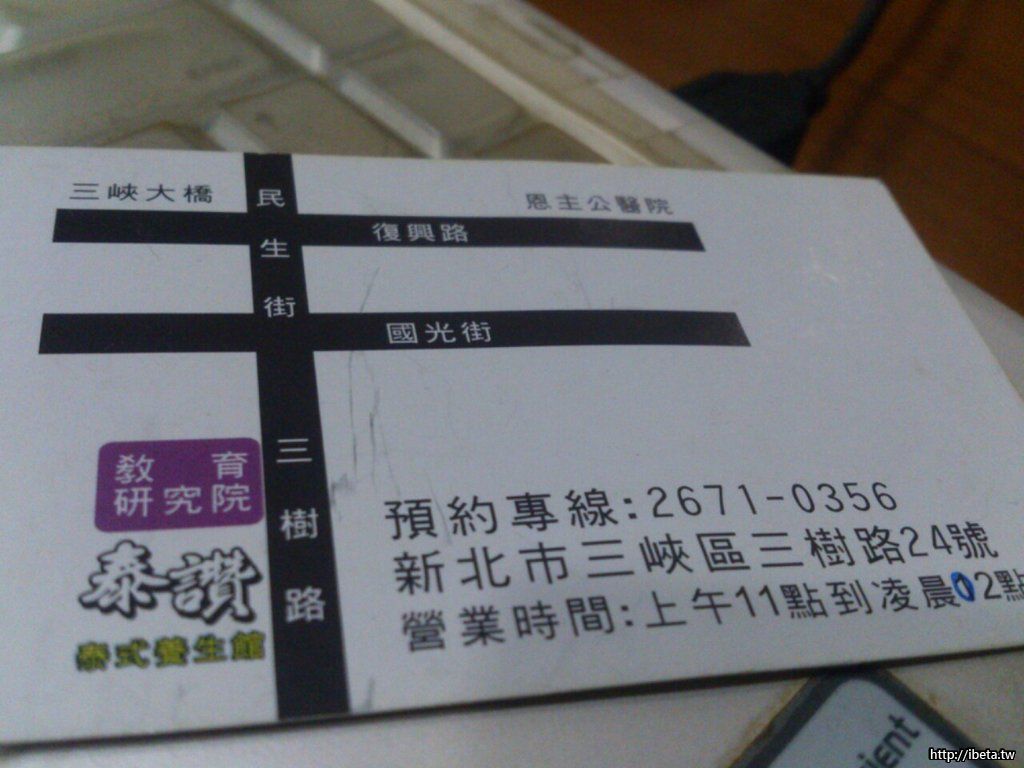今天要推薦的泰讚養生館,已經在三峽開了兩三年了(以前叫小胖養生館)。當初會踏進這家店,也是在愛北大上看到有人推薦才有勇氣踏入,不然光看店面的樣子,除了很容易錯過外,也會有點害怕。