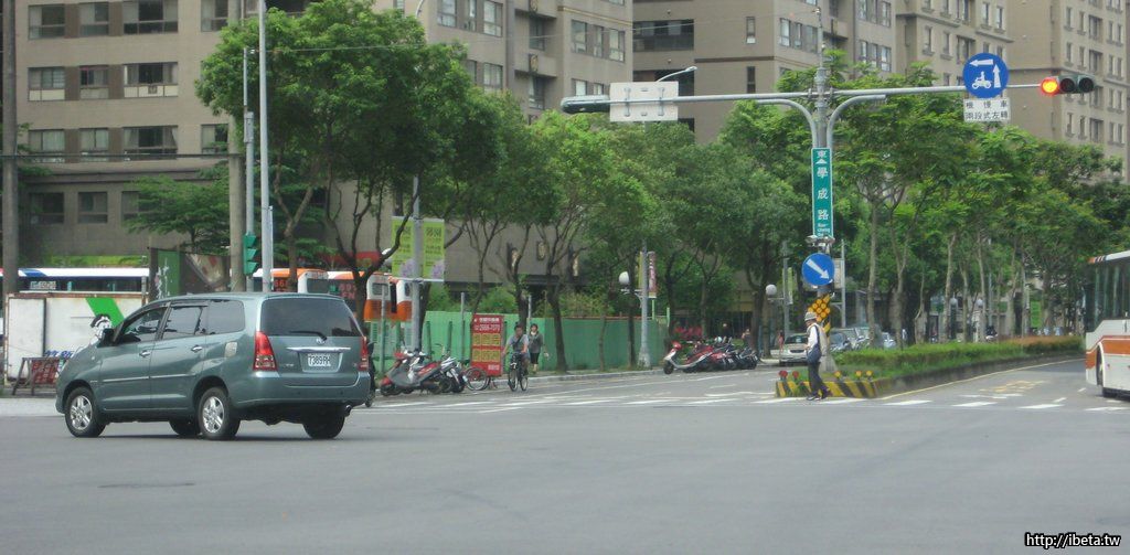 少一張紅燈時輪子尚未超過停止線的照片.