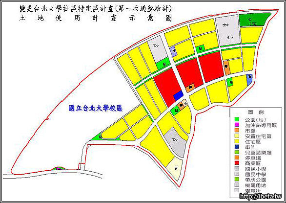 國立臺北大學校區用地約53.54公頃,區內17條道路、2所國中、2所國小、6處公園等公共設施用地共約57公頃公頃,公共設施比例達59%,餘為機關用地及可建築住宅、商業用地。