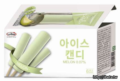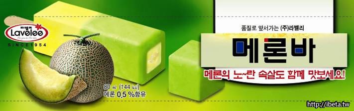 韓國樂飛利雪糕,雙層哈密瓜、牛奶玉米粒、巧克力脆片、草莓果肉、哈密瓜、香草、綠茶口味,全面每支35元,頂級巧克力脆片50元。